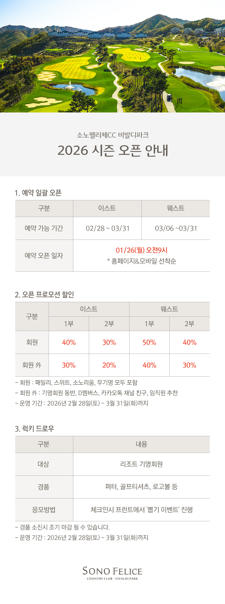 소노펠리체 CC 비발디파크 2026 시즌 오픈 안내