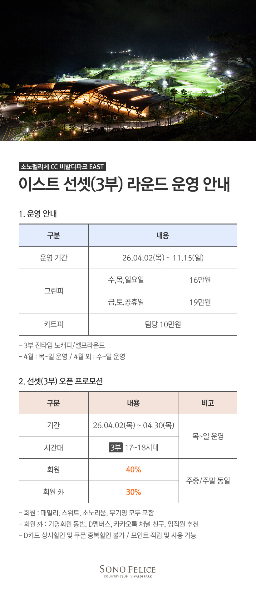 소노펠리체 cc 비발디 이스트 선셋(3부) 라운드 운영 안내