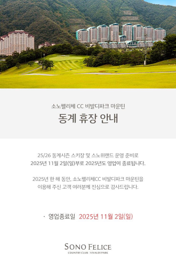 소노펠리체 cc 비발디파크 하반기 하이시즌5 운영안내
