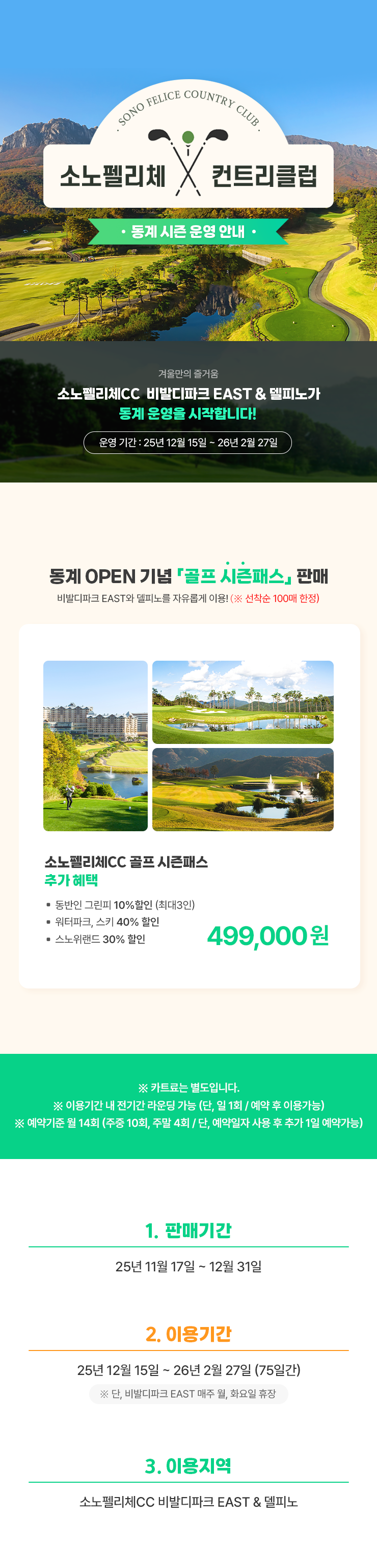 소노펠리체 cc 동계 시즌 운영 안내